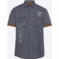 Das Herren-Kurzarm-Hemd von Reward kombiniert stilvolles Design mit praktischen Details. Es besticht durch seinen klassischen Kentkragen, zwei praktische Brusttaschen und einen modernen Aufdruck auf der Vorderseite. Der Kontrast am Ärmelabschluss verleiht dem gestreiften Hemd eine besondere Note. Der hohe Baumwollanteil sorgt für angenehmen Tragekomfort. Gestreiftes Design mit Aufdruck Kentkragen für klassischen Stil Zwei praktische Brusttaschen Kontrast am Ärmelabschluss Hoher Baumwollanteil für Komfort