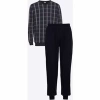 Dieser Herren-Pyjama von Reward bietet Ihnen komfortable Nächte und entspannten Schlaf. Das Set aus einem Allover-Print-Shirt mit Bündchen und einer einfarbigen Hose mit Bündchen besteht aus reiner Baumwolle für ein angenehmes Hautgefühl. Herren-Pyjama mit Bündchen Allover-Print-Shirt, unifarbene Hose Reine Baumwolle OEKO-TEX® Standard 100