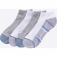 Diese Herren-Sport-Sneaker-Socken von Reward im praktischen 4er-Pack bieten Ihnen optimalen Tragekomfort für sportliche Aktivitäten. Die Dehnungszone und Belüftungsstruktur sorgen für ein angenehmes Fußklima, während der elastische Bund perfekten Halt garantiert. Sportliches Design im 4er-Pack Dehnungszone für optimalen Komfort Mit Belüftungsstruktur Hergestellt aus Baumwolle, Polyamid und Elasthan OEKO-TEX® Standard 100
