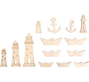 Tauche ein in den Zauber des Meeres mit den liebevoll gestalteten Holz Streuteilen „“Leuchtturm & Co““. Diese maritimen Dekorationen sind der perfekte Weg, um das Gefühl von Sommer, Sonne und Urlaub in deine kreativen Projekte zu bringen. Mit einem Set aus 14 Streuteilen hast du eine Vielzahl von Gestaltungsmöglichkeiten: Verzierte Karten und Geschenkverpackungen werden zu echten Hinguckern, während selbst Tischkärtchen und floristische Arrangements deinen Gästen ein Gefühl von Strandurlaub vermitteln. Jedes Set enthält kunstvoll gestaltete Leuchttürme, Boote und Anker in unterschiedlichen Größen von 1,5 bis 9 cm sowie mit feinen Details wie kleinen Herzen oder Löchern. Diese Vielfalt ermöglicht es dir, einzigartige Akzente zu setzen. Durch die Stärke von 3 mm sind die Streuteile robust und langlebig, ideal für verschiedene Dekorationen. Gestalte ganz einfach ein einladendes Ambiente, das an erholsame Tage am Meer erinnert. Hol dir jetzt diese maritimen Streuteile und hinterlasse bleibende Eindrücke. Bestelle jetzt die Holz Streuteile „“Leuchtturm & Co““ und verwandle einfache Bastelprojekte in kleine Kunstwerke! Größe: 1.5 – 9 cm Inhalt: 14 Stück Material: Sperrholz Stärke: 3 mm