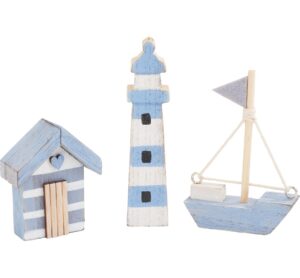 Setze mit dem Holzdeko-Set „“Maritim““ in deinem Zuhause maritime Akzente und träume dich an die schönsten Strände der Welt. Drei liebevoll bemalte Motive – ein Boot, ein Leuchtturm und ein Haus – lassen sich perfekt miteinander kombinieren und sorgen für eine frische Brise in deiner Dekoration. Mit einer Höhe zwischen 6 und 10 cm sind die Holzfiguren ideal zur Verwendung auf der Fensterbank, dem Tisch oder auch im Regal geeignet. Das Holzdeko-Set ist ideal für die Sommersaison geeignet und bringt die perfekte Urlaubsstimmung in dein Zuhause. Auch als Geschenk für Freunde und Familie, die das Meer lieben, eignet sich dieses Set hervorragend. Du kannst die Holzdeko nach Belieben in Szene setzen. Ob als einzelne Highlights oder als Ensemble, das Holzdeko-Set „“Maritim““ ist vielseitig einsetzbar und sorgt für eine gemütliche Atmosphäre. Durch die unterschiedlichen Größen der Motive kannst du auch tolle Akzente in deine DIY-Projekte integrieren. Sichere dir jetzt das Holzdeko-Set „“Maritim““ und bringe das Meer in deine vier Wände! Zeige deine Liebe zum Ozean und gestalte dein Zuhause auf besondere Art und Weise neu. Bestelle jetzt und tauche ein in die Welt des DIYs! Anzahl Motive: 3 Anzahl Teile: 3 Größe: 6 – 10 cm Material: Holz Stärke: 2.5