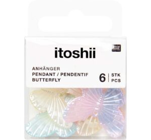 Entfessele deine Kreativität mit dem itoshii Perlen-Set „“Schmetterlinge““, Rainbow Pearl Mix! Lass farbenfrohe Schmetterlinge zu deinem künstlerischen Highlight werden und gestalte einzigartige Schmuckstücke und Dekorationen, die verzaubern und inspirieren. Mit einer Größe von 30 mm Breite und 22 mm Länge bieten die 6 Schmetterlingsperlen aus Kunststoff genau die richtige Balance zwischen Ausdrucksstärke und Vielseitigkeit. Perfekt kombinierbar, erschaffen sie gemeinsam mit weiteren Perlen faszinierende Muster und Designs. Ob Ketten, Armbänder oder dekorative Accessoires – dieser Rainbow Pearl Mix bringt Farbe und Leben in deine Projekte. Sammle neue Ideen: Von verspielten Kinderprojekten über detaillierte Kunstwerke bis hin zu eleganten Schmuckstücken, die vielseitigen Anwendungsbereiche lassen deiner Fantasie freien Lauf. Durch die klare und brillante Farbgebung dieser Schmetterlingsperlen setzt du eindrucksvolle Akzente, die jedem deiner Werke eine unverwechselbare Note verleihen. Worauf wartest du noch? Erweitere deine kreative Sammlung und bestelle noch heute das itoshii Perlen-Set „“Schmetterlinge““, Rainbow Pearl Mix, um deine nächsten Meisterwerke zu gestalten und deine kreative Reise fortzusetzen. Inhalt: 6 Länge: 22 mm Breite: 30 mm Material: Kunststoff