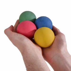 <p>4 Moosgummibälle im Set – mach dein Leben bunter!<br />Der Moosgummiball kann in verschiedensten Therapieformen, wie zum Beispiel der Einzel- oder Gruppentherapie, eingesetzt werden. Auch im Kindergarten und in der Schule findet er seine Anwendung.<br />Mit einem Durchmesser von 62 mm ist er sehr handlich und auch für Kinderhände geeignet.<br />Die robusten Bälle aus Moosgummi sind springfreudig, handschmeichelnd, leicht und absolut vielseitig einsetzbar. Sie eignen sich hervorragend zum Jonglieren, aber auch im Bereich der Rhythmischen Gymnastik, Hockergymnastik oder aber auch einfach als Spiel- und Wurfbälle sind sie einsetzbar.</p> <ul> <li>ca. 6.2 cm Durchmesser</li> <li>ca. 60 g Gewicht</li> <li>Einfach mit einem feuchten Tuch zu reinigen</li> <li>Material: Widerstandsfähiges, robustes Gummi</li> <li>Sprungfreudig</li> <li>Jeweils 1x pro Farbe: blau, gelb, grün und rot</li> </ul> <p>Lieferumfang: <br />4 Moosgummibälle (1x grün, 1x blau, 1x gelb, 1x rot)</p>