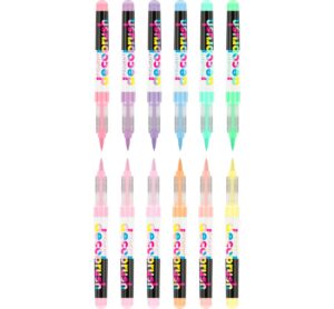Karin PIGMENT Decobrush Collection mit 12 Markern in einem exklusiven Etui zur einfachen Verwendung und zum Schutz der Marker. Enthalten sind unterschiedliche Farben mit einer Füllmenge von jeweils 2,4 ml. Die Stifte aus der Collection Pigment Decobrush sind gefüllt mit einer opaken, matten und ungiftigen Acrylfarbe auf Basis organischer Pigmente. Nach dem Trocknen sind die Farben lichtecht, permanent und deckend. Mit diesen Farben erzielen Sie beste Ergebnisse auf Papier, Metall, Glas, Stein, Kunststoff, Holz, Textilien, Keilrahmen und vielen anderen Materialien. Die Farbe ermöglicht auch das Auftragen auf dunkle Oberflächen. Hergestellt werden die Farben mit einer „“Liquid Ink““-Technologie. Im Gegensatz zu traditionellen Stiften ermöglicht es einen 100 %igen Verbrauch der enthaltenen Farbe. Die pinselartige Spitze ist aus Nylon und sehr flexibel. Dadurch lassen sich dünne und dicke Linien auftragen oder tolle Ornamente und Flächen bemalen. Einfach eine tolle Collection zum Erstellen hochwertiger Bilder, Geschenkanhänger, Glückwunschkarten und vielen weiteren Dekorationen. Dieses Set bietet Ihnen vielfältige Anwendungsmöglichkeiten und die Pigment Brushpen sind doppelt so effizient wie herkömmliche Fasermaler. Die Anwendung ist ganz einfach, schütteln Sie die Marker bis die Farbe im Stift sich gut vermischt hat und schon kann es losgehen. Die Farben können kombiniert, aufgehellt und verblendet werden. Farbübergänge werden durch einfaches berühren der Spitzen oder direkt auf der bemalten Oberfläche erzielt. Ein hochwertiges Set das Ihnen viele Möglichkeiten der Kreativität eröffnet. Füllmenge: 2.4 ml Inhalt: 12 Stück Material: Kunststoff