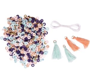 Tauche ein in die fantasievolle Welt des Schmuckdesigns mit dem farbenfrohen Katsuki Schmuckset! Lasse deiner Kreativität freien Lauf und kreiere einzigartige Accessoires, die deinen persönlichen Stil perfekt ergänzen. Mit diesem umfassenden Bastelset kannst du mindestens drei atemberaubende Armbänder gestalten. Die harmonische Kombination aus scheibenförmigen Perlen, funkelnden Glasperlen, eleganten Metallelementen und verspielten Quasten ermöglicht dir unzählige Designmöglichkeiten. Dank der beiliegenden Anleitungskarte erhältst du inspirierende Tipps und Tricks für individuelle Kreationen. Glas-, Metall- und Kunststoffmaterialien verleihen deinen Schmuckstücken eine faszinierende Vielseitigkeit, ideal für sommerliche Outfits oder als besondere Geschenke für Freunde und Familie. Der sommerliche Charme der Perlen wird dich begeistern und inspiriert dich dazu, mit Farben und Formen zu experimentieren. Mache dich bereit für dein nächstes kreatives Projekt und verleihe deinem Modegeschmack einen persönlichen Touch. Bestelle dir noch heute das Katsuki Schmuckset und starte dein eigenes kreatives Abenteuer! Material: Kunststoff, Metall, Glas