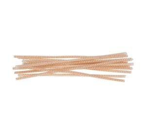 Mit diesen gewachsten Kerzendochten wird die Herstellung von eigenen Kerzen ganz einfach. Die Dochte haben einen Ø von ca. 2,1 mm. Es können Kerzen gegossen oder ein Gefäß mit Kerzensand befüllt werden. Runddochte besitzen ein hervorragendes Abbrennverhalten. Durch die gewachste Oberfläche geht der Docht eine gute Verbindung mit dem Kerzenwachs ein, was zu einem gleichmäßigen Abbrennverhalten führt. Hübsch verpackt sind selbstgemachte Kerzen ein bezauberndes Geschenk für viele Gelegenheiten. Eine schöne Idee ist auch ein Bastelnachmittag mit Kindern, an dem (unter Aufsicht) Kerzen gegossen werden. Inhalt: 10 Stück Durchmesser (außen): 2.1 mm Länge: 9 cm Material: Baumwolle, Wachs