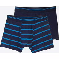 Bequeme Jungen-Retroshorts, 2er-Pack, NKD-OLIVER von Reward Fashion Hoher Baumwoll-Anteil Angenehmes Tragegefühl Mit Elasthan Kontrastfarbiger Streifen im Bund Basic im praktischen 2er-Pack Eine Shorts gestreift, die andere einfarbig