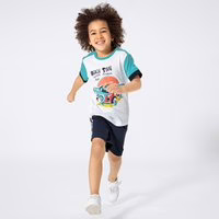 Dieses Kinder Jungen Set von Kids kombiniert Komfort und Stil für jeden Tag. Es besteht aus einem T-Shirt mit kontrastierenden Ärmeln und einer Bermuda, beide aus Baumwolle gefertigt. Perfekt für aktive Jungen und für den täglichen Gebrauch geeignet. 2-teiliges Set für Jungen T-Shirt mit Kontrastärmeln Bermuda aus Baumwolle Mit coolem Druckdesign OEKO-TEX® Standard 100