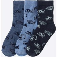 Diese Kinder-Jungen-Socken von Kids bieten durch den hohen Baumwollanteil angenehmen Tragekomfort und sind in einem praktischen Set erhältlich, das durch coole Fahrzeug-Motive in neutralen Blautönen begeistert. Socken-Pack mit Fahrzeug-Motiven Hoher Baumwollanteil für Komfort OEKO-TEX® Standard-100-zertifiziert