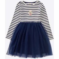 Dieses Kinder Mädchen Kleid von Kids begeistert mit garngefärbten Streifen und auffälligem Frontprint. Das Langarmkleid kombiniert einen komfortablen Rip-Oberteil und einen Meshrock mit Singlejersey-Unterrock aus reiner Baumwolle. Der glitzernde Mesh-Rock verleiht dem Look das gewisse Etwas und macht das Kleid zu einem Hingucker für jeden Tag. Modischer Style mit Streifen und Frontprint Langarmkleid mit Rip-Oberteil Meshrock mit Glitzer-Effekt Singlejersey-Unterrock aus reiner Baumwolle Komfortabel zu tragen OEKO-TEX® Standard 100