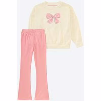 Dieses 2-teilige Kinder-Mädchen-Set von Kids mit glitzerndem Druck begeistert durch seinen trendigen Oversized-Schnitt und liebevolle Details. Das Set umfasst ein Shirt mit funkelnden Pailletten und passender Bootcut-Leggings im Rippen-Design. Ein bequemes Outfit, das Ihrem Kind einen angenehmen Tragekomfort für Alltag und besondere Anlässe bietet. Modernes Shirt mit Glitzer und Pailletten Rundhalsausschnitt mit Rippbündchen Bequeme Bootcut-Leggings in Rippenoptik Leicht überschnittene Schultern im Oversized-Design OEKO-TEX® Standard 100