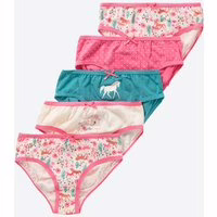 Diese Kinder-Mädchen-Slips von Kids im praktischen 5er-Pack bieten optimalen Tragekomfort für Ihre Kleinen. Aus reiner Baumwolle gefertigt, garantieren sie ein weiches Gefühl auf der Haut. Zwei Slips mit Prints und drei in Allover-Print-Designs sorgen für Abwechslung im Kleiderschrank. Kinder-Mädchen-Slips im 5er-Pack 2x Print, 3x Allover-Print Aus reiner Baumwolle OEKO-TEX® Standard 100 zertifiziert
