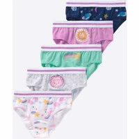Diese Kinder Mädchen Slips im 5er Pack von Kids bieten angenehmen Tragekomfort und fröhliche Designs, perfekt für den täglichen Gebrauch. Mit reiner Baumwolle als Obermaterial ist ein weiches Hautgefühl garantiert. Der Mix aus Print und Allover-Prints sorgt für Abwechslung in der Unterwäsche-Garderobe Ihrer Tochter. Fröhliche Mädchen-Slips im 5er Pack Mix aus 3 Prints, 2 Allover-Prints Aus reiner Baumwolle für Komfort OEKO-TEX® Standard 100