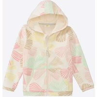 Diese Kinder-Mädchen-Sweatjacke mit Kapuze von Kids begeistert durch ihren kontrastierenden Look und verspielte Details. Das durchgehende Muster mit großen Schleifen macht die Sweatjacke zu einem besonderen Highlight und die weiche, angeraute Innenseite sorgt für hohen Tragekomfort im Alltag. Verspieltes Design mit großen Schleifen Kontrastkapuze mit Tape-Band Praktische Kängurutasche vorne Normale Passform für angenehmes Tragen Weiche, angeraute Innenseite Reißverschluss-Zieher mit Band OEKO-TEX® Standard 100