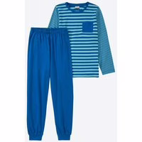 Dieser Kinder-Schlafanzug von Kids bietet höchsten Tragekomfort durch sein Obermaterial aus reiner Baumwolle. Das Shirt mit gestreiftem Druck und die einfarbige Hose mit Bündchen machen ihn zum perfekten Begleiter für entspannte Nächte. Gestreiftes Shirt und unifarbene Hose Mit Bündchen für perfekten Sitz Aus reiner Baumwolle OEKO-TEX® Standard 100