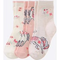 Diese Kinder-Mädchen-Socken von Kids bieten ein pferdestarkes Trio im ansprechenden Design mit Glitzereffekt für kleine Mädchen. Mit weichem Materialmix und flacher Rosso-Naht sorgen sie für angenehmen Tragekomfort im Alltag und sind die ideale Ergänzung für jeden Kinder-Kleiderschrank. Pferdestarkes Design mit Glitzereffekt Weicher Materialmix für angenehmen Sitz Flache Rosso-Naht ohne drückende Kanten Elastischer Bund sorgt für guten Halt OEKO-TEX® Standard 100
