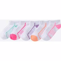 Die Kinder-Unisex-Sport-Sneaker-Socken im praktischen 5er-Pack bieten idealen Tragekomfort für aktive Kids. Mit sportlichen Akzenten und Belüftungsstruktur sorgen sie für ein angenehmes Tragegefühl. Die elastische Dehnungszone gewährleistet eine perfekte Passform. Sportliche Sneaker-Socken mit neon Akzenten Mit elastischer Dehnungszone Belüftungsstruktur für optimalen Komfort OEKO-TEX® Standard 100 zertifiziert