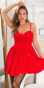 Kleid Cocktailkleid Glitzer Strass Minikleid Spaghettiträger Partykleid mit Soft Cups und Falten Effekt