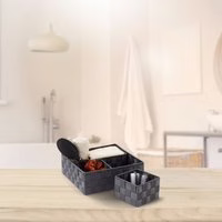 Dieses Körbe-Set ist nicht nur nützlich, sondern auch dekorativ. Die ansprechende Flecht-Optik besitzt einen vielseitigen Look, der sich mit jedem Einrichtungsstil verträgt und sich so nahtlos in jede Umgebung einfügen kann. Für zusätzliche Stabilität verfügen die Körbe über ein Skelett aus Metallstangen. In ansprechender Flecht-Optik Vielseitig einsetzbar Maße: 1-mal ca. 28x28x10cm; 1-mal ca. 26x13x9cm und 2-mal ca. 13x13x9cm Hinweis: Dekoration nicht im Lieferumfang enthalten.