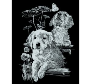Ein wundervolles Kratzbild „“Labrador““ in Schwarz / Silber mit einer Größe von ca. 20 x 25,2 cm. In diesem Set sind 1 Bildvorlage, 1 Kratzmesser und 1 Übungsblatt enthalten. Ein schöner Freizeitspaß ab 8 Jahren. Entspannen Sie bei einem neuen Hobby! Die Bildvorlage ist mit feinen grauen Linien bedruckt, die nach und nach frei gekratzt werden. Hierfür benutzen Sie das beiliegende Kratzmesser. Auf dem Übungsblatt können Sie die Linien und Muster vorher üben. Es entsteht ein außergewöhnliches Bild aus silberfarbenen Linien, das wie eine Radierung aussieht. Das Kratzen fördert die Kreativität, die Konzentration und bringt dabei riesigen Spaß! Eine tolle Beschäftigung zur Stressbewältigung und ein schönes Hobby. Prima als Geschenkidee für Alt und Jung. Länge: 25.2 cm Breite: 20 cm Material: Karton