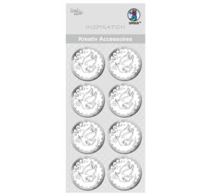 8 hochwertig geprägte und mit goldener Farbe bedruckte Papier-Accessoires mit Motiv Taube, ideal zum Gestalten von Karten, Dekorationen und für Geschenkverpackungen zur Hochzeit, für Kommunion und Konfirmation oder für die Taufe. Einfach mithilfe des Klebepunkts auf der Rückseite positionieren. Jede Papier Oblate ist ca. 3 cm groß. Material: Papier