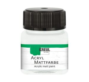 Die KREUL Acryl Mattfarben sind klassisch-matte Acrylfarben zum Bemalen von Holz, Papier, Karton, Styropor, Stein, Beton, Terrakotta, Glas, Keramik, Ton, Metall, Kunststoff, Leder und Modelliermasse. Die Farben sind geeignet zum Auftragen mit Pinsel, Schwamm oder Farbroller sowie zum Krakelieren. Lust auf pure Mattierung? Die KREUL Acryl Mattfarben im 20 ml Glas verleihen Ihrer Dekoration schlichte Eleganz. Die tollen Farbnuancen der Acryl Mattfarbe von KREUL reichen vom warmen Graphitgrau bis hin zu freundlichem Zitronengelb. Die Acryl Mattfarbe ist die beste Wahl beim Grundieren, Ausmalen oder als Basis zur Serivettentechnik oder zum Foto Transfer. Schon Ihre Cremigkeit und ihr angenehmer Duft lässt Bastler-Herzen höher schlagen. Die bewährte KREUL Qualität für tolle Farbeffekte. Die robuste Farbe von KREUL ist verlässlich in ihrer Anwendung. Die Mattfarbe lässt sich unkompliziert auftragen, trocknet schnell und ebenmäßig. Weiterhin verfügt die Acryl Mattfarbe von KREUL über die Eigenschaften: wasser- und wetterfest speichelecht wasserverdünnbar auf Wasserbasis untereinander mischbar nach dem Trocknen überlackierbar Füllmenge: 20 ml