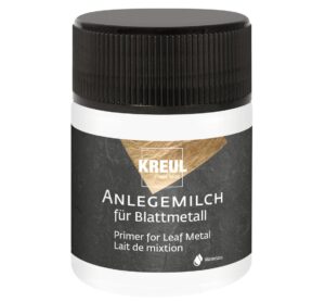 Diese Anlegemilch ist ein Spezialkleber auf Wasserbasis zum Anlegen von Blattmetallen oder Blattmetall-Flocken auf den verschiedensten Deko-Objekten für den Innenbereich. Für saugende und nicht saugende Untergründe geeignet. Tragen Sie die Anlegemilch mit einem Pinsel dünn auf die fettfreie und saubere Oberfläche auf. Nach ca. 20 Minuten ist die Oberfläche, je nach Untergrund, für 1 bis 24 Stunden aufnahmebereit. Legen Sie die Blattmetall-Flocken oder das Blattmetall mit Hilfe eines Pinsels oder Tuches sanft auf die Oberfläche und drücken dieses vorstichtig an. Nach dem Ablüften könne die Überreste mit einem Tuch oder Pinsel einfach entfernt werden. Füllmenge: 50 ml