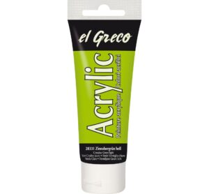 Die hochpigmentierte el Greco Acrylic für pastöse Malerei ist für viele Untergründe wie Leinwand, Karton, Papier, Stein, Metall, Leder und Kunststoff geeignet. Die Farben zeichnen sich durch Ihre Leuchtkraft aus und lassen sich untereinander mischen und mit Wasser verdünnen. So können Sie die Farben deckend oder lasierend auftragen und erzielen spezielle Effekte. Mit den fluoreszierenden Farbtönen von el Greco Acrylic setzen sie tolle Akzente die unter Schwarzlicht leuchten. Sie können die Farbe mit einem Pinsel oder einem Spachtel auftragen und somit auch strukturreiche Bilder zaubern. Füllmenge: 75 ml
