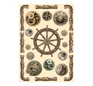 Entdecke die Lasercut-Motive „“Songs of the Sea – Steuerrad““ und lasse deiner Kreativität freien Lauf! Diese einzigartigen Lasercut-Motive bestehen aus 21 Teilen, darunter ein Steuerrad, Metall-Rohre, Zahnräder und Schrauben. Sie sind einseitig bedruckt und dekoriert, um deine Scrapbooking- und Mixed Media-Arbeiten zu bereichern und zu verschönern. Die Motive können auf verschiedene Weisen verwendet werden. Es eignet sich hervorragend als Hauptprodukt eines Projekts, aber auch als Dekoration für deine Scrapbooking-Seiten, Karten oder andere Bastelarbeiten. Auf einem DIN A5 Format befinden sich 21 Teile, die mit weiteren Lasercut-Motiven, Motivstrohseide, Deko-Elementen, Silikonstempeln und Scrapbook-Blocks kombiniert werden können. Durch die Lasercut-Motive erzielt man einen tollen 3D-Effekt. Es ist ein Must-have für alle, die gerne basteln und ihre Kreativität ausleben möchten. Viel Spaß bei deinen neuen Projekten! Anzahl Teile: 21 Vorgestanzt DIN Format A5 Material: Sperrholz