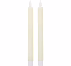 Mit der LED-Echtwachskerze mit Timer 6/18 Std. holst du dir eine stimmungsvolle Atmosphäre in dein Zuhause. Die Kerze besteht aus echtem Wachs und ist somit von einer echten Kerze kaum zu unterscheiden. Dank der Timerfunktion leuchtet sie für 6 Stunden und schaltet sich dann automatisch für 18 Stunden aus. So kannst du sie bedenkenlos brennen lassen, auch wenn du nicht im Raum sein solltest. Die LED-Echtwachskerze hat einen Durchmesser von 2,2 cm und eine Höhe von 24,5 cm. Sie benötigt 2 AAA-Batterien, die nicht im Lieferumfang enthalten sind. Die warmweiße Leuchtfarbe sorgt für eine gemütliche und entspannte Stimmung in deinem Wohnzimmer, Schlafzimmer oder auch auf deiner Terrasse. Hol auch du dir die LED-Echtwachskerze mit Timerfunktion und sag Kerzenstummeln leb wohl. Timer Inhalt: 2 Stück Durchmesser (außen): 2.2 cm Höhe: 24.5 cm Material: Wachs, Kunststoff