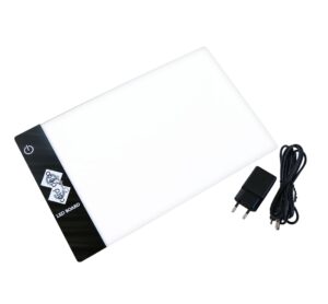 Mit dieser einzigartigen LED Leuchtplatte wird das Übertragen von Motiven und Vorlagen, sowie das Handlettering zum echten Kinderspiel. Die LED Leuchtplatte hat eine Länge von ca. 34,5 cm, eine Breite von ca. 22 cm und eine Stärke von ca. 1 cm. Die beleuchtete Fläche hat eine Größe von ca. 29,5 cm x 21 cm. Mit Eurostecker (für die Schweiz ist ein Adapter notwendig). Für eine angenehme Körperhaltung bei kreativen Bastelarbeiten zu unterstützen wird diese ultra flache LED Leuchtplatte einfach auf einem Tisch entsprechend positioniert. Durch das flache Design ist die Handhaltung während der Arbeiten sehr natürlich und angenehm. Die praktische Leuchtplatte ist für filigrane Zeichnungen, Window Color, Kalligrafie, Scrapbooking und das Trendthema Handlettering geeignet. Mit dem praktischen Licht von unten, können Vorlagen einfach abgepaust werden, um zum Beispiel schöne Karten im Handlettering-Style zu gestalten. Geeignet für helle Papiere bis 240 g/m² und Tonpapier bis 130 g/m². Gewicht: 685 g Schalter Hz: 50 Länge: 34.5 cm Breite: 22 cm Höhe: 1 cm Material: Glas, Kunststoff
