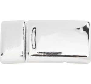Der Magnetverschluss eignet sich für flache Lederbänder bzw. Kunstlederarmbänder wie unser Wickelarmband „“Velvet““ oder das Armband „“Flower““. Die Enden des Armbandes werden in die Vertiefungen an den kurzen Seiten des Verschlusses geklebt. Der Magnet lässt sich leicht öffnen und hält dennoch sicher. Verschluss ca. L 2,7 x B 1,4 cm. Innenmaß 2 x 9,5 mm. Länge: 2.7 cm Breite: 1.4 cm Höhe: 5.7 mm Material: Metall