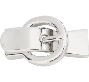 Der Magnetverschluss „“Schnalle““ eignet sich für flache Armbänder aus Leder bzw. Kunstlederarmbänder wie unser Armband „“Flower““ oder das Wickelarmband „“Velvet““. Auch Armbänder aus Stoff, gewebte Armbänder oder Einzelarmbänder, die Sie zusammenfassen möchten, können mit dem Verschluss geschlossen werden. An den kurzen Seiten des Armbandes befinden sich Vertiefungen, in welche die Enden des Armbandes geklebt werden. Der Magnet lässt sich einfach öffnen und hält sicher. Verschluss ca. L 4,1 x B 1,3 cm. Länge: 4.1 cm Breite: 1.3 cm Material: Metall