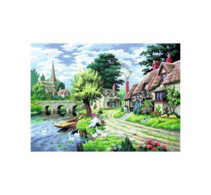 Malen nach Zahlen „“Am Fluss““ mit einer Größe von ca. 30 x 40 cm. Im Set enthalten sind eine Anleitung, 10 Acrylfarben, 1 Pinsel und eine bedruckte Malpappe mit Konturen und Farbnummern. Entspannung pur! Ein tolles Set um professionelle Malergebnisse in Künstlerqualität zu erreichen. Durch die aufgedruckten Konturen und Farbnummern können die Farben genau an der richtigen Stelle aufgetragen werden. So entsteht nach und nach ein perfektes Bild. Ein beliebter Freizeitspaß bei dem Stress abgebaut wird und sich die pure Entspannung einstellt. Ein wunderbarer Malspaß für Groß und Klein und eine schöne Geschenkidee. Breite: 40 cm Höhe: 30 cm Material: Karton