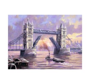Ein Set Malen nach Zahlen „“Tower Bridge““ mit einer Größe von ca. 30 x 40 cm. Enthalten sind im Set 10 Acrylfarben, eine Anleitung, 1 Pinsel und eine bedruckte Malpappe mit Konturen und Farbnummern. Das wundervolle Motiv Tower Bridge stillt die Sehnsucht nach fremden Ländern. Sie lieben es zu malen? Dieses Set verspricht Malspaß und Entspannung pur! Malen Sie nach Zahlen und erreichen Sie professionelle Malergebnisse. Durch die aufgedruckten Farbnummern und Konturen gibt es keinen Zweifel, an welcher Stelle die Farbe aufgetragen wird. So entsteht nach und nach ein einzigartiges Bild. Entspannen Sie bei diesem kurzweiligen und kreativen Hobby. Eine wunderbare Geschenkidee für Alt und Jung. Breite: 40 cm Höhe: 30 cm Material: Karton