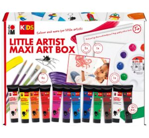 Mit der Marabu KiDS Little Artist Maxi Art Box hast du alles, was du für deine kreativen Projekte brauchst! Egal, ob du malen, basteln oder gestalten möchtest, diese Box bietet dir eine umfangreiche Ausstattung an Farben und Zubehör. Entdecke die leuchtenden Farben! Die Mal- und Bastelbox im XXL-Format enthält 12 x 36 ml Little Artist Künstlermal- und Bastelfarbe in verschiedenen Farben, wie z.B. Rosé Beige, Orange, Rosa, Blau, Violett und Grün. Mit dem Keilrahmen und den zwei Malkartons kannst du direkt loslegen und deine Werke stilvoll in Szene setzen. Die Mischpalette ermöglicht dir das Anmischen von Farben in individuellen Nuancen und die verschiedenen Borsten- und Synthetikpinsel sorgen für perfekte Ergebnisse. Die Little Artist Farbe ist universell einsetzbar und eignet sich für unterschiedliche Untergründe wie Keilrahmen, Papier, Karton, Stein, Styropor, Holz oder Terrakotta. Sie ist auswaschbar ab 30 °C und enthält keine schädlichen Inhaltsstoffe wie Mikroplastik oder Parabene. Die Vielseitigkeit dieser Box macht sie zu einem unverzichtbaren Highlight im Bereich Bastelmaterial und Künstlerbedarf. Kombiniere die verschiedenen Farben und Techniken, um individuelle Effekte zu erzielen und deine Projekte aufzuwerten. Die Farben sind vegan, glutenfrei und made in Germany – das ist Qualität, auf die du vertrauen kannst. Bestelle die Marabu KiDS Little Artist Maxi Art Box noch heute und entdecke deine künstlerischen Fähigkeiten! Anzahl Teile: 21