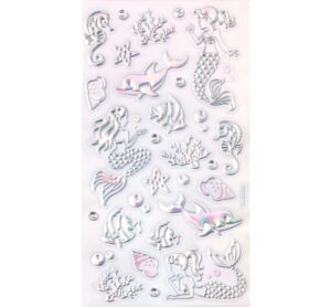 Tolle Metallic Sticker „“Meerjungfrau““, 29 Stück mit unterschiedlichen Motiven. Die Motivgröße ist ca. 1,5 cm bis 5,5 cm. Mit diesen hochwertigen Stickern bringen Sie alles zum Glänzen! Die Motive sind auf einer transparenten Folie in Metallic-Silber aufgebracht und schimmern je nach Lichteinfall wie ein Hologramm. Das Motiv ist etwas erhöht und sieht dadurch sehr edel aus. Mit den Motiven wie beispielsweise Meerjungfrau, Delphin, Koralle und Seestern lassen sich hochwertige Dekorationen in Scrapbook-Alben, Grußkarten oder Bastelarbeiten zaubern. Selbstklebend Inhalt: 29 Stück Länge: 17.5 cm Breite: 9.5 cm Material: Kunststoff