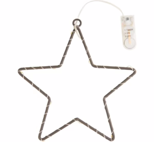 Erleuchte dein Zuhause mit einem Hauch von Magie! Der Metallring-Stern „“Star““ mit LED-Licht verleiht jedem Raum eine festliche Atmosphäre. Mit seiner warmweißen Leuchtfarbe und dem robusten Metallmaterial ist dieser Stern der perfekte Begleiter für deine kreative Weihnachtsdekoration. Der Metallring hat eine Stärke von 4 mm und ist mit einer praktischen Öse versehen, die einen Durchmesser von etwa 1 cm hat. Dies ermöglicht dir eine einfache und flexible Aufhängung an jedem gewünschten Ort. Dank des integrierten Timers kannst du das Licht bequem steuern und hast immer die perfekte Beleuchtung zur Hand. Ob als Fensterdekoration, über dem Kamin oder als Highlight in deinem Bastelprojekt – dieser Stern sorgt für strahlende Momente. er Metallring-Stern „“Star““ mit LED-Licht ist mit 2 x CR2302 (nicht im Lieferumfang) batteriebetrieben. Lass deiner Kreativität freien Lauf und verleihe deinem Zuhause eine persönliche Note. Bestelle jetzt den Metallring-Stern „“Star““ und bringe festlichen Glanz in dein Leben! Timer Material: Metall Stärke: 4 mm