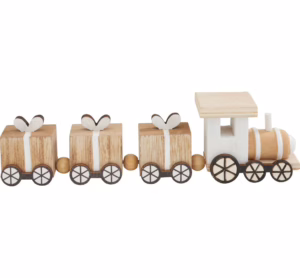 Entdecke die zauberhafte Welt der Miniatur Holz-Eisenbahn mit 3 Geschenke-Waggons und bringe festliche Freude in dein Zuhause! Diese charmante Holz-Dekoration, mit einer Breite von 3 cm, einer Höhe von 5 cm und einer Länge von 18 cm, ist das perfekte Accessoire für deine Weihnachtsdekoration. Gefertigt aus robustem Holz und feinem Sperrholz, vereint diese Miniatur-Eisenbahn nostalgischen Charme mit moderner Handwerkskunst. Jeder der drei liebevoll gestalteten Geschenke-Waggons ist ein kleiner Hingucker und bietet Platz für kreative Dekorationsideen. Stelle sie auf deinem Kaminsims, als Teil eines festlichen Tischarrangements oder in deinem Kinderzimmer auf, um die Fantasie der Kleinen anzuregen. Diese Eisenbahn ist nicht nur ein dekoratives Highlight, sondern auch ein ideales Geschenk für Sammler und Liebhaber traditioneller Weihnachtsdekorationen. Lass dich von der Detailverliebtheit und der handwerklichen Präzision verzaubern und schaffe eine warme, einladende Atmosphäre in der Weihnachtszeit. Hol dir jetzt die Miniatur Holz-Eisenbahn und erwecke die Magie der Weihnacht in deinem Zuhause zum Leben! Länge: 18 cm Breite: 3 cm Höhe: 5 cm Material: Holz, Sperrholz