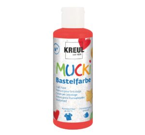 MUCKI Bastelfarbe, 80 ml ist eine matte leuchtende, gebrauchsfertige Farbe, die speziell für Kinder ab 3 Jahren entwickelt wurde. Die Kinder Bastelfarbe lässt sich leicht verstreichen und trocknet schnell auf. Sie kann auf Papier, Karton, Holz, Keilrahmen, Stein, Terrakotta, Glas und Modelliermasse vermalt werden. Die deckende Farbe ist wasserverdünnbar. MUCKI Bastelfarbe trocknet nicht wasserfest auf, lässt sich leicht von der Haut abwaschen und ist ab 30 °C sogar gut auswaschbar. Füllmenge: 80 ml Geeignet für Kinder