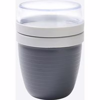 Dieser Müslibecher to go von Home bietet mit ca. 500 ml Becher und ca. 180 ml Deckel eine praktische Lösung für unterwegs. Zwei getrennte Behälter halten Müsli und Milch oder Joghurt frisch und ermöglichen einen auslaufsicheren Transport. Praktischer Müslibecher to go von Home Modernes Design mit zwei separaten Behältern Becher ca. 500 ml, Deckel ca. 180 ml Auslaufsicherer Transport durch Drehverschluss Für Spülmaschine, Mikrowelle und Gefrierschrank geeignet Frische Zubereitung direkt vor dem Verzehr Behälter 1 für Müsli oder Früchte Behälter 2 für Milch oder Joghurt Vor dem ersten Gebrauch gründlich spülen