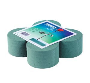 In der Packung sind 4 zylinderförmige Steckschaum-formen von mosy mit einen Durchmesser von ca. 8 cm. Nass-Steckmasse eignet sich ideal für Gestecke in denen frische Blumen auch frisch bleiben sollen. Die Formen werden dafür in Wasser gelegt, bis sie vollgesogen sind. Anschließend lassen sich Blumen, Zweige oder andere Dekomaterialien hineinstecken. Die Zylinderformen sind besonders für kleinere Gestecke und Arrangements vorteilhaft. Der Steckschaum ist von hochwertiger Profi-Qualität und lässt sich bei Bedarf leicht zurechtschneiden. Inhalt: 4 Stück Durchmesser (außen): 8 cm Höhe: 5 cm Material: Kunststoff