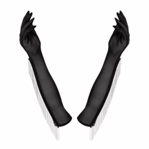 Obsessive Schwarze lange Handschuhe Milladis aus feinem Stretchtüll mit schwingenden Kettchen-Fransen. Weich und elastisch. September 7, 2025 Schön lange Handschuhe Preis: 27.9 EUR Zur Produktbeschreibung