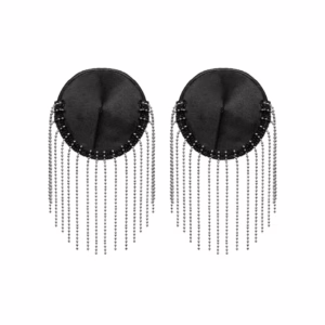 Obsessive Schwarze Nipple Cover Milladis aus edel schimmerndem Satin mit schwingenden Kettchen-Fransen. Selbstklebend und wiederverwendbar. September 7, 2025 Nipple Cover aus seidigem Satin Preis: 14.9 EUR Zur Produktbeschreibung