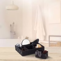 Ein ansprechende Flecht-Optik macht aus diesem Organizer-Set ein vielseitig einsetzbares Dekorations- und Nutz-Objekt, das jeden Haushalt bereichert. Metallstangen sorgen für zusätzliche Stabilität, um viele Dinge in den Boxen verstauen zu können. In ansprechender Flecht-Optik Ineinander stapelbar Maße: ca. 31,5×23,5x6cm; 22,5×14,5x5cm und 22,5×7,5x5cm Hinweis: Dekoration nicht im Lieferumfang enthalten.