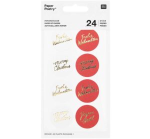 Deine Weihnachtsdeko wird mit den Papierstickern „“Merry Christmas““ im Handumdrehen zu einem echten Hingucker. Die 24 Sticker in Rot und Weiß mit dem festlichen Schriftzug sind die perfekte Ergänzung für alle DIY-Projekte rund um die Weihnachtszeit. Aufgeteilt auf 3 Bogen, bietet dir dieser Artikel liebevoll gestaltete Aufkleber für deine kreativen Ideen. Die Papiersticker bestehen aus hochwertigem und FSC-zertifiziertem Papier, das sich durch seine Folienveredelung besonders gut für Bastelarbeiten eignet. Der Ø der Sticker beträgt 3,2 cm und macht sie somit ideal für verschiedenste Bastelprojekte. Ob für Scrapbooking, Grußkarten, Geschenkverpackungen oder zum Verzieren von Schachteln und Papiertüten – diese Sticker sind universell einsetzbar und verleihen deinen Basteleien das gewisse Etwas. Dank ihrer Selbstklebefunktion lassen sich die Sticker mühelos auf unterschiedlichen Oberflächen befestigen und verleihen deinen Werken den letzten Schliff. Lasse deiner Kreativität freien Lauf und gestalte individuelle Weihnachtskarten, Geschenkanhänger oder verziere einfache Papiertüten für kleine Aufmerksamkeiten. Gestalte auch du mit den Papierstickern „“Merry Christmas““ deinen eigenen zauberhaften Weihnachtslook und lass deine Kreativität erstrahlen. Hole dir jetzt diese tollen Sticker und werde kreativ! Selbstklebend Inhalt: 24 Stück Durchmesser (außen): 3.2 cm Material: Papier