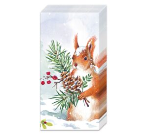 Gestalte mit den Papiertaschentüchern „“Roger““ von IHR dein eigenes winterliches Kunstwerk! Das süße Eichhörnchen-Motiv im verschneiten Wald zaubert eine gemütliche Atmosphäre in dein Zuhause. Die Bedruckung ist einseitig, während die Rückseite weiß ist, was ideal für die Anwendung mit der Serviettentechnik ist. Mit Serviettenlack können die Motive auf verschiedenste Untergründe wie Holz, Pappe, Karton oder Stoff übertragen werden. Aber auch andere DIY-Projekte wie Kerzen oder Bilderrahmen lassen sich individuell gestalten. Die Papiertaschentücher haben eine Größe von 21 cm x 21 cm und kommen im praktischen 10er Pack. Hol auch du dir jetzt die Papiertaschentüchern „“Roger““ von IHR und lass deiner Kreativität freien Lauf! Erfahre alles über die kreativen Gestaltungsmöglichkeiten rund um das Thema Serviettentechnik und entdecke weitere tolle Motiv-Taschentücher, Rohlinge und Zubehör. Inhalt: 10 Stück Länge: 21 cm Breite: 21 cm Material: Papier