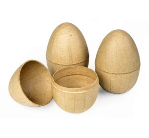 Ei aus Pappmaché, teilbar. 3 Stück. Ideal zum Befüllen und Verschenken. Das Ei hat ein Durchmesser von ca. 8,8 cm und eine Höhe von ca. 13 cm. Das Pappmaché-Ei kann nach Belieben bemalt oder beklebt werden. Das Ei eignet sich zum Verstecken von kleinen Süßigkeiten oder Präsenten zu Ostern. Sie können das Ei dekorativ mit Papiergras füllen. Inhalt: 3 Stück Durchmesser (außen): 8.8 cm Höhe: 13 cm Material: Pappmaché