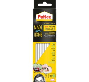 Heißkleber ist in vielen Bereichen wie Dekorieren, Heimwerken, Reparieren und Basteln nicht mehr wegzudenken. Mit der Serie „“Made@Home““ von Pattex erhalten Sie Heißklebesticks mit einem Ø von ca. 11 mm für entsprechende Heißklebepistolen. Der Heißklebestick wird im Inneren der Pistole geschmolzen und mittels Abzug durch die Klebedüse auf die gewünschte Fläche aufgetragen. So ist präzises, aber auch großflächiges Kleben möglich. Fast alle Materialien können mit Heißkleber zusammengeklebt werden. Lediglich Styropor auf Styropor, sowie Weich-PVC, PP, PE und PTFE können nicht verwendet werden. Ideal für floristische Dekorationen wie Kränze oder Metallringe. Diese einfach mit Kunstblumen oder Trockenblumen mit Hilfe des Heißklebers dekorieren. Da der Kleber vollständig transparent auftrocknet, sind hinterher keine Klebestellen zu sehen. Auch dauerhafte Verklebungen an Wänden sind mit Heißkleber möglich. Gewicht: 20 g Inhalt: 10 Stück Durchmesser (außen): 11 mm Länge: 20 cm