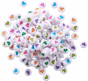 Dieses Perlen-Set, rund enthält 165 weiße Perlen, welche mit Herzen in unterschiedlichen Farben verziert sind. Die Perlen haben einen Ø von ca. 7 mm und einen Stärke von ca. 4 mm. Der Ø der Bohrung ist ca. 1 mm. Ein Perlen-Set was in keiner Bastelkiste fehlen sollte. Fertigen Sie aus diesen tollen Perlen individuelle Schmuckstücke. Hervorragend zum Gestalten von Armbändern, Ketten, Schlüsselanhängern oder Freundschaftsbändern. Klasse auch für die Kartengestaltung, zum Verzieren von Geschenkverpackungen oder Scrapbook-Alben. Kombiniert mit weiteren Bastel- oder Schmuckperlen ergeben sich immer wieder neue und einzigartige Gestaltungsmöglichkeiten. Der Kreativität einfach freien Lauf lassen. Inhalt: 165 Stück Durchmesser (außen): 7 mm Material: Kunststoff Stärke: 4 mm